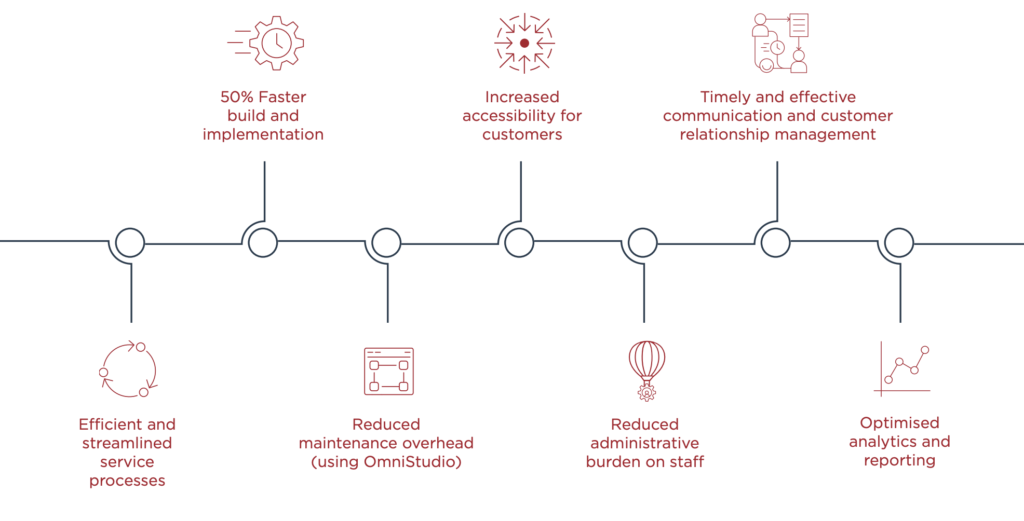 Utilising the new Public Sector Solutions (PSS) functionality, Brooke were able to rapidly develop a solution that enhanced and streamlined existing EWOV business processes. By using the Omnistudio functionality (part of PSS) Brooke were able to develop key modules of the system up to 50% faster than using traditional Salesforce development methods.