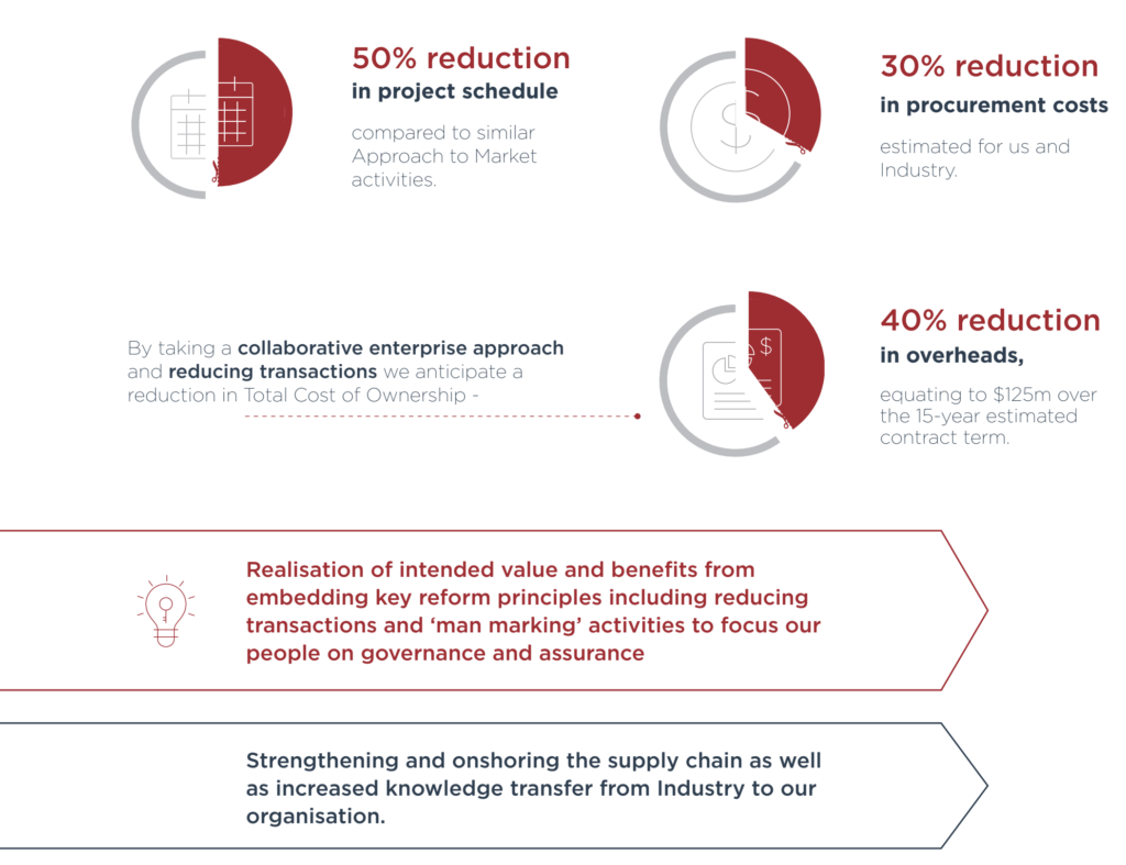 So, with help, we worked with the end users and Industry to establish an integrated enterprise for the assets, underpinned by an outcome-focused, performance-based contracting arrangement that incentivised Industry to deliver a shared outcome with us.